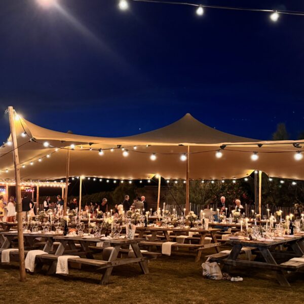 Un tente très bien adaptée au mariage de 170 personnes en table rondes, avec une surface de 200 m2 cette tente nomade vous permet d’organiser des réceptions jusqu’à 250 personnes en cocktail.