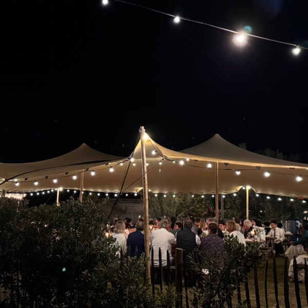La nomade idéale pour un mariage de 250 personnes en table rondes, avec une surface de 300 m2 cette tente nomade vous permet d’organiser des réceptions jusqu’à 450 personnes en cocktail.